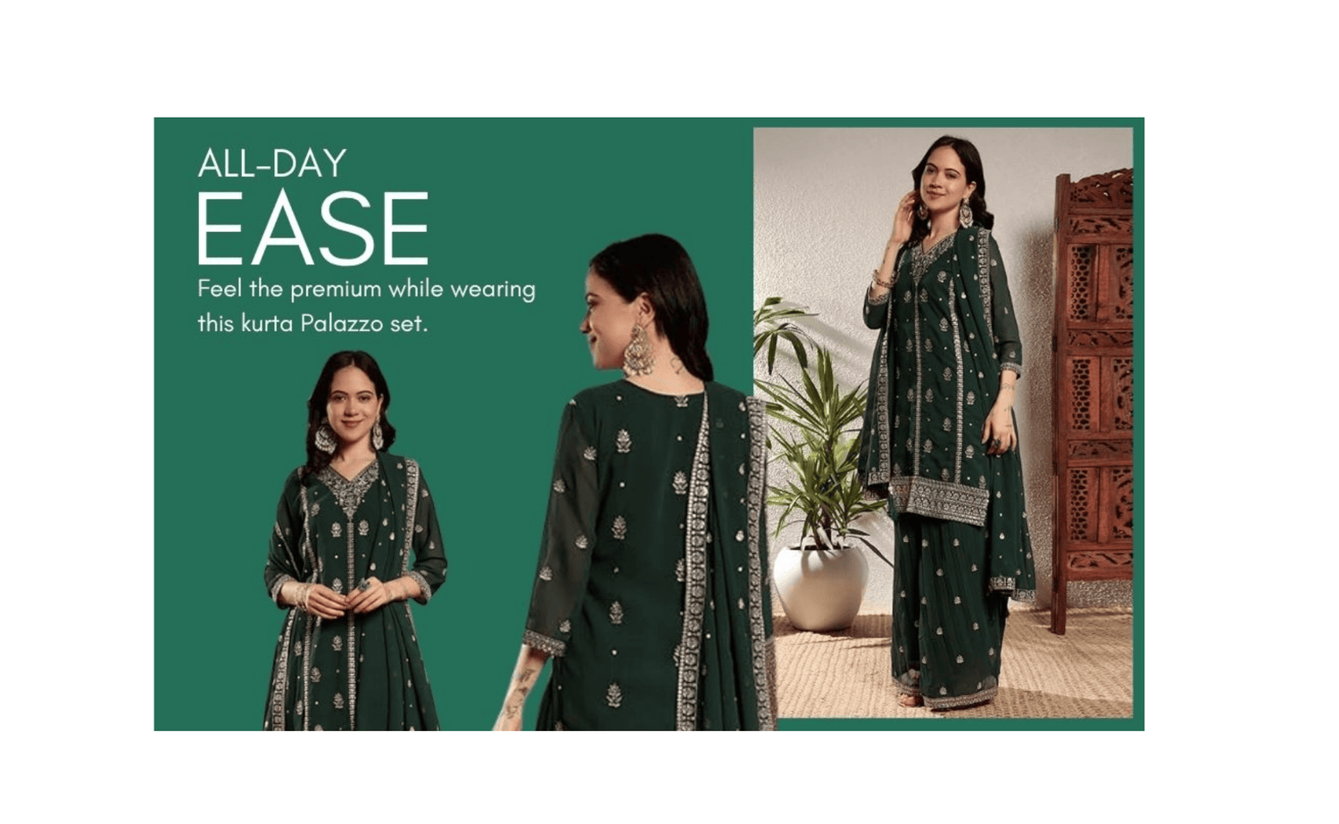 - Designed to enhance your refined sense of style, this kurta palazzo with dupatta ensemble effortlessly combines traditional charm with contemporary fashion.