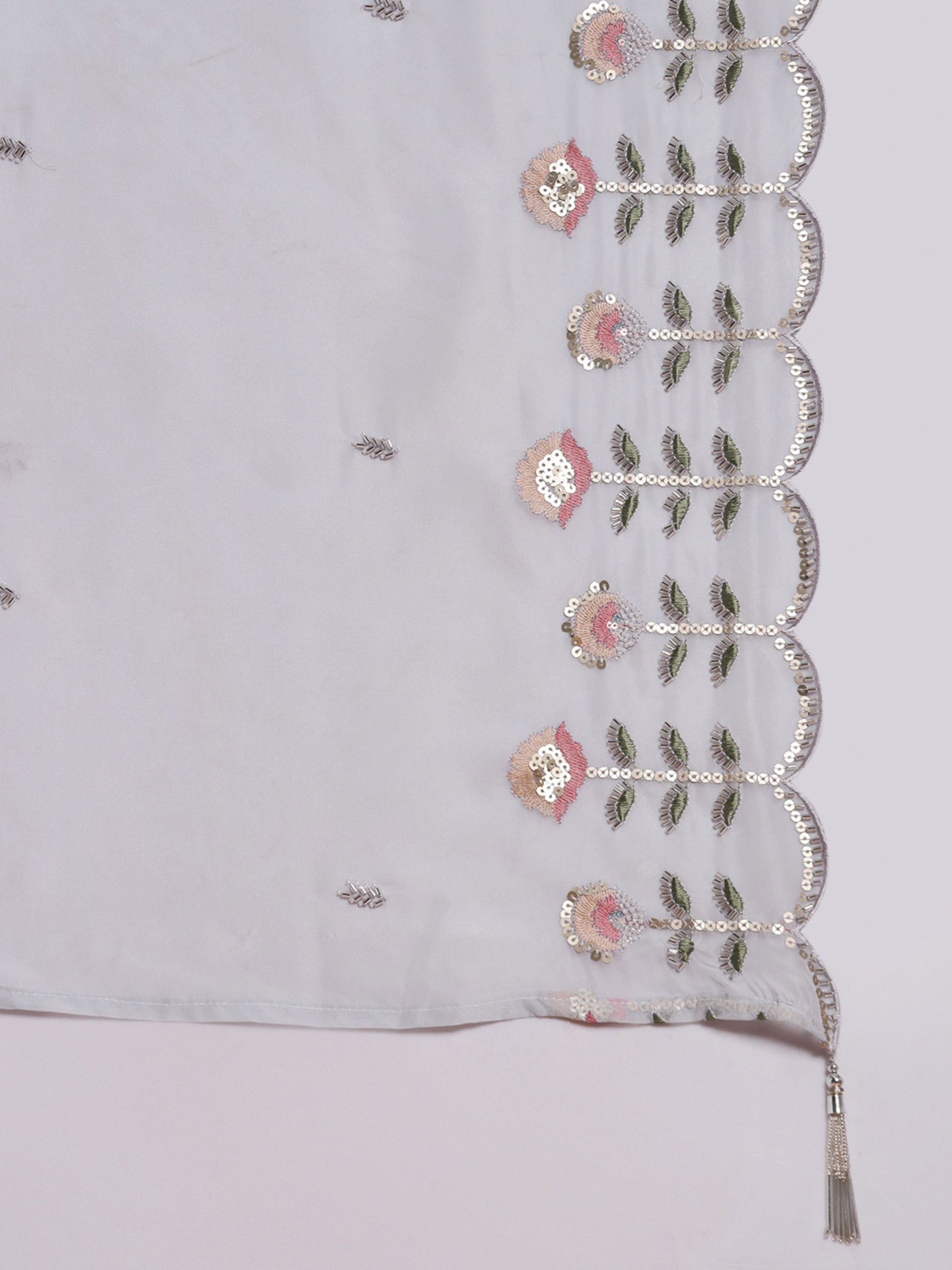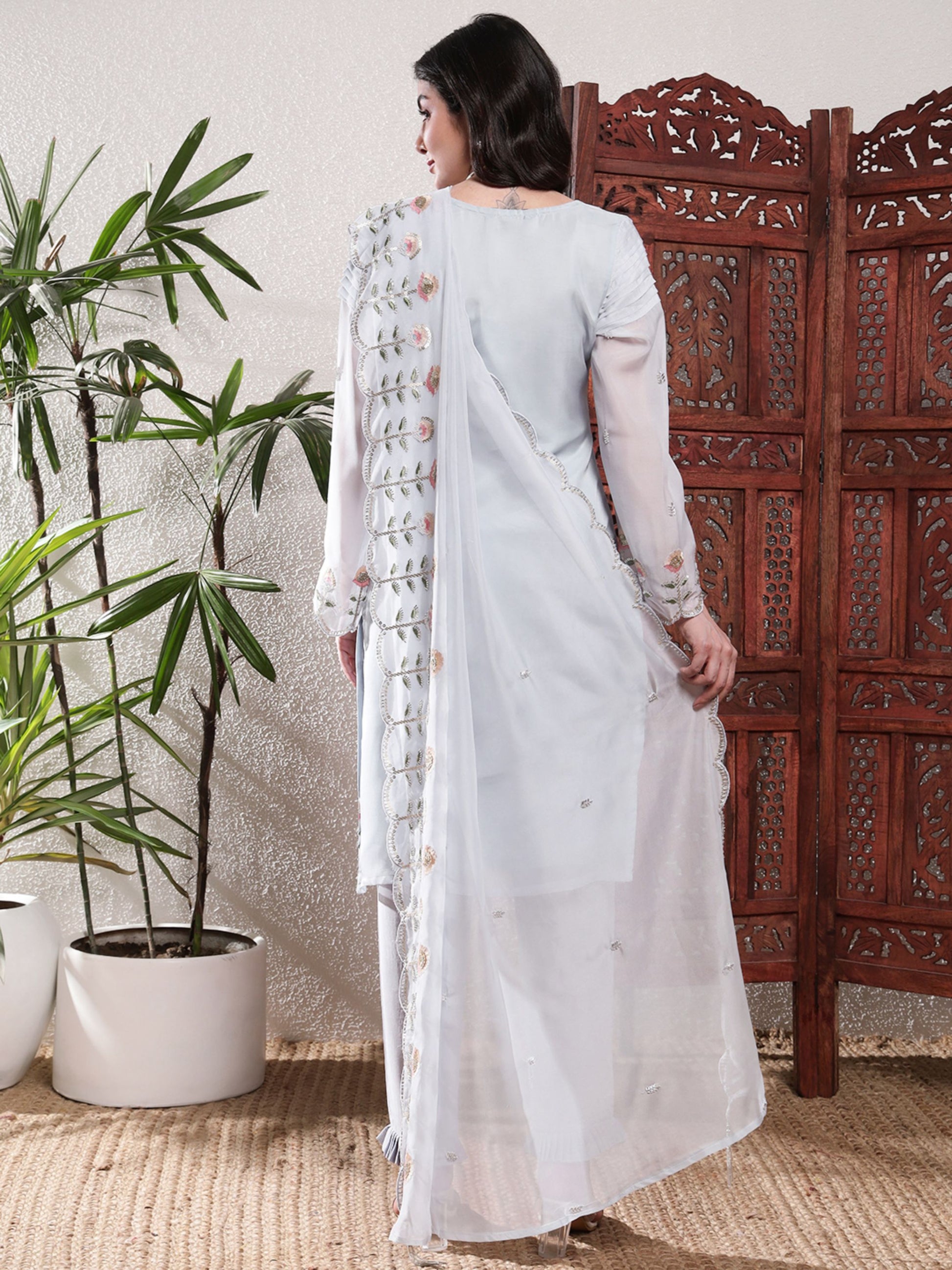 Baby Blue Embroidered Silk Women's Kurta, Pyjama & Dupatta Set