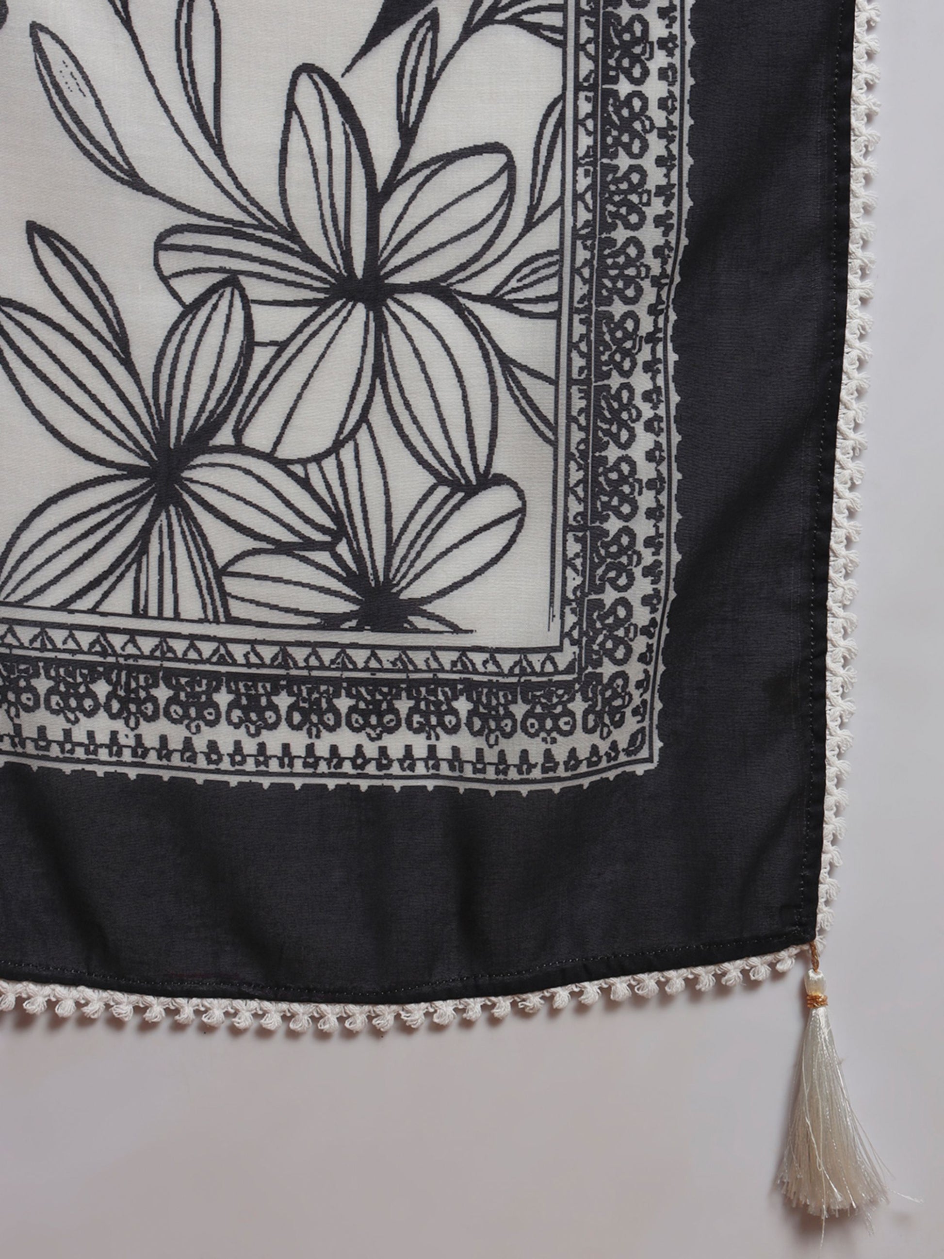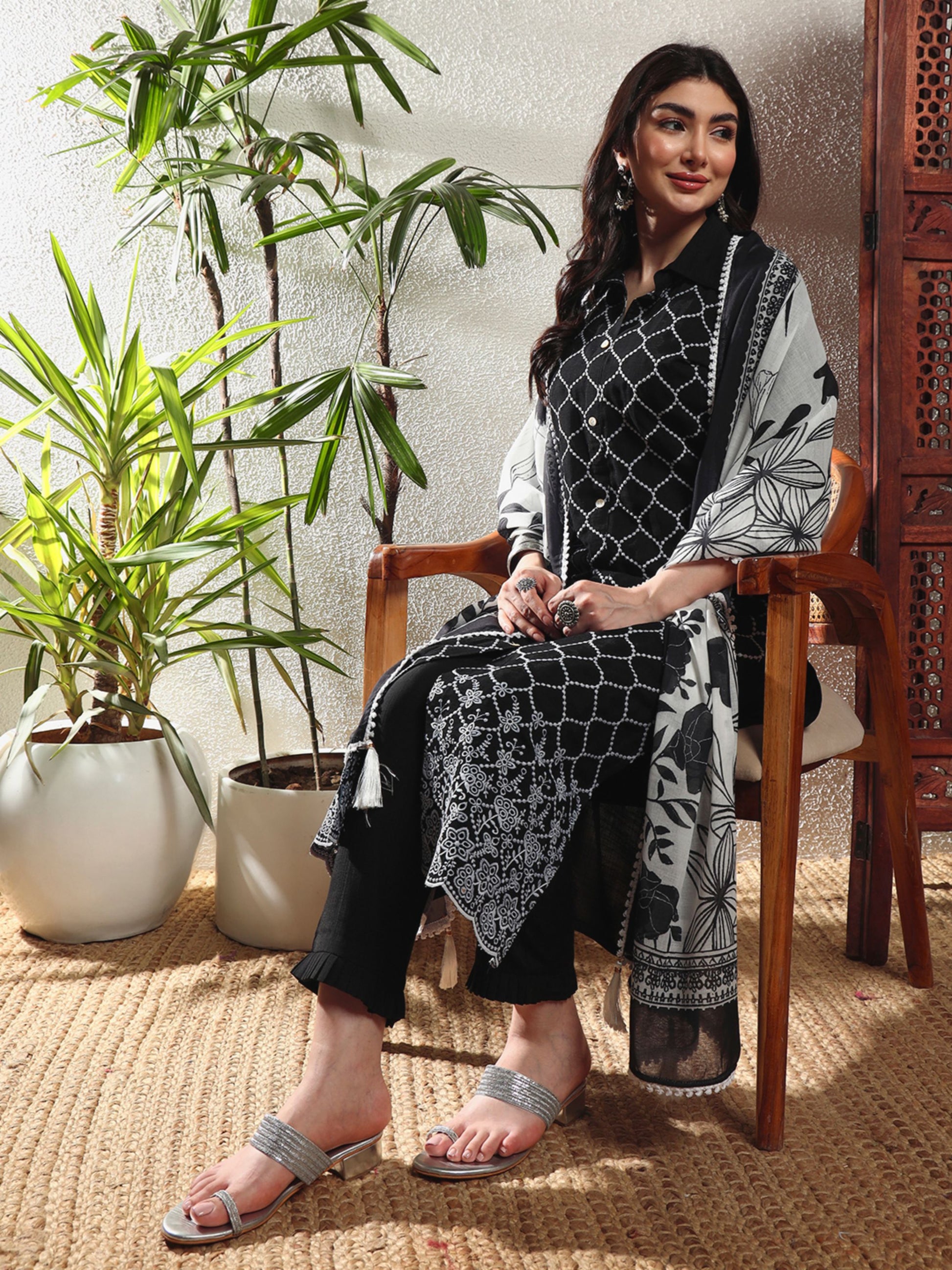 Black Checkered Viscose Women's Kurta, Pyjama & Dupatta Set