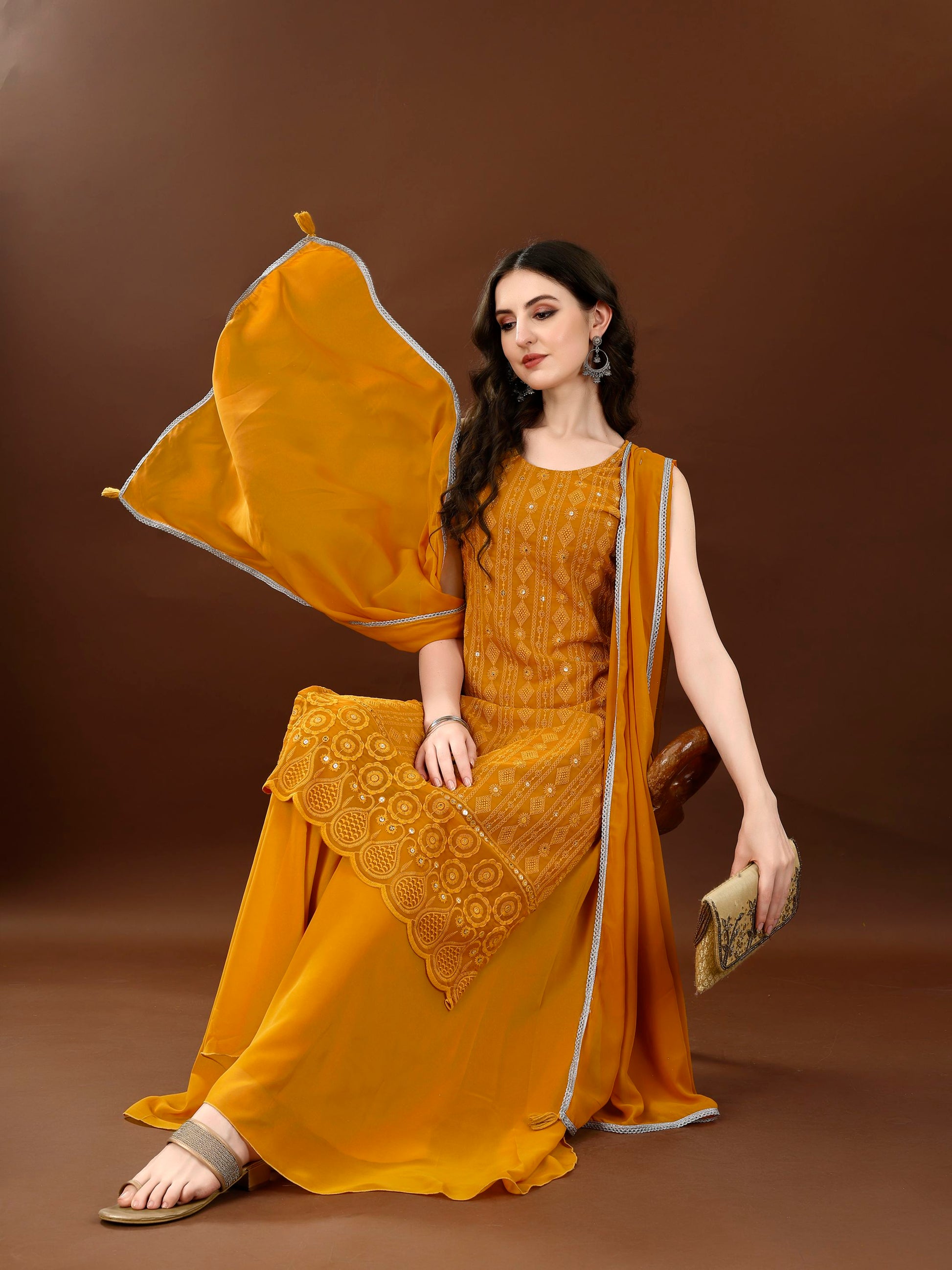 Women's Embroidered Georgette Kurta Palazzo and Dupatta Set