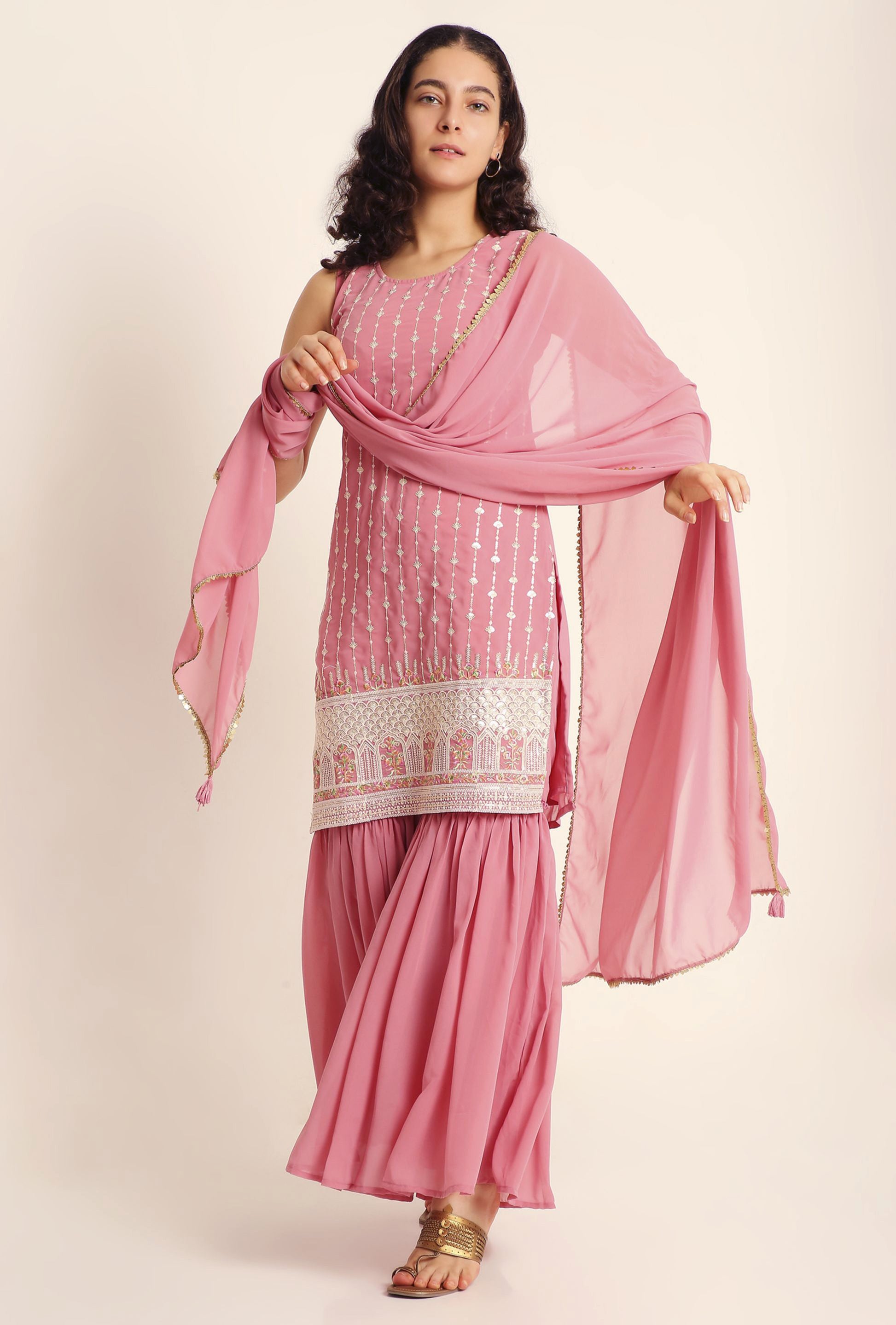 Package Contains: 1 Kurta, 1 Sharara, 1 Dupatta