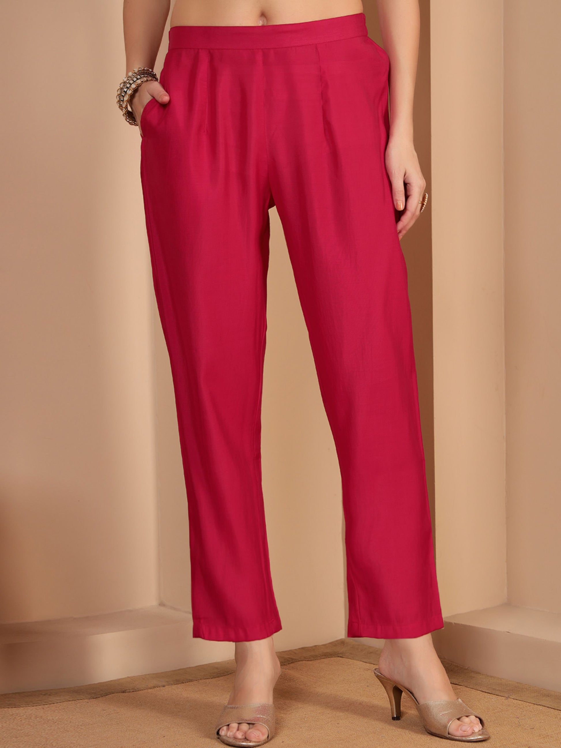 Crimson Pink Embroidered Silk Women's Kurta, Pyjama & Dupatta Set