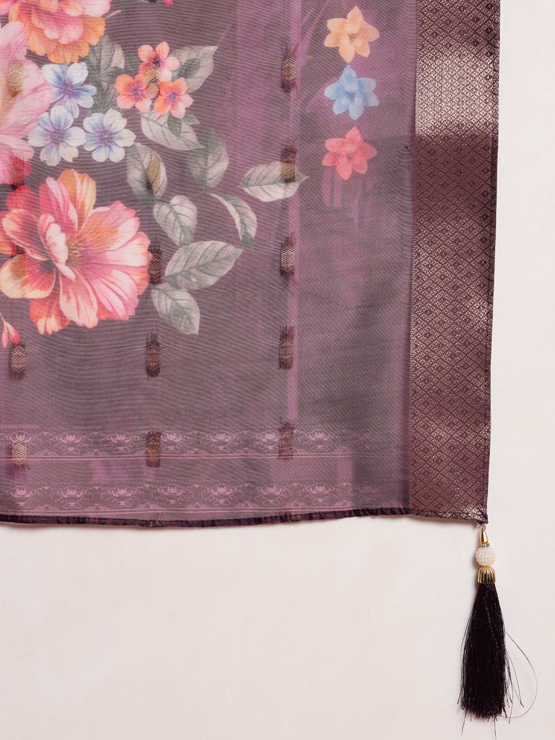 Dark Wine Embroidered Silk Women's Kurta, Pyjama & Dupatta Set