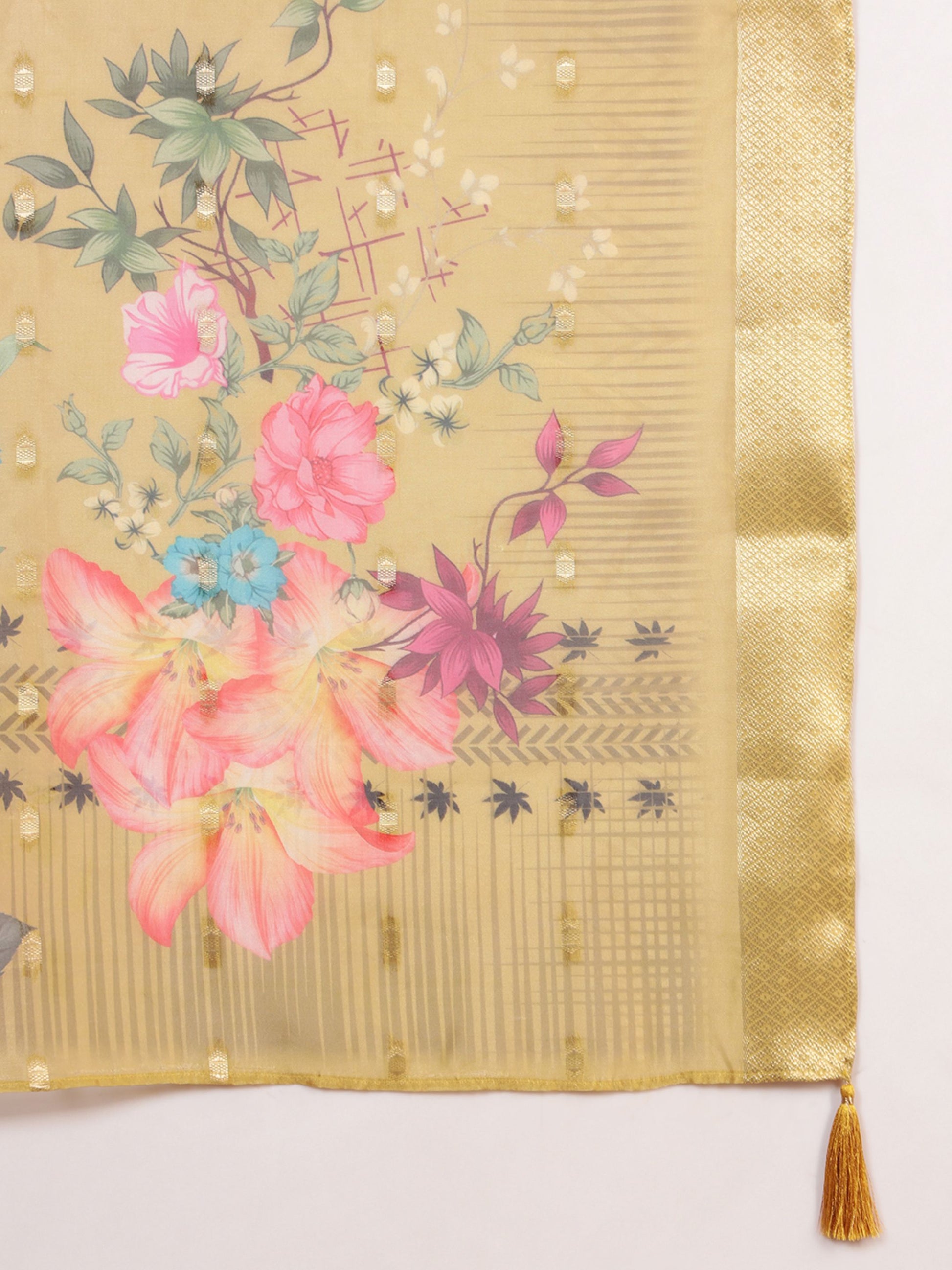 Dijon Yellow Embroidered Viscose Women's Kurta, Pyjama & Dupatta Set