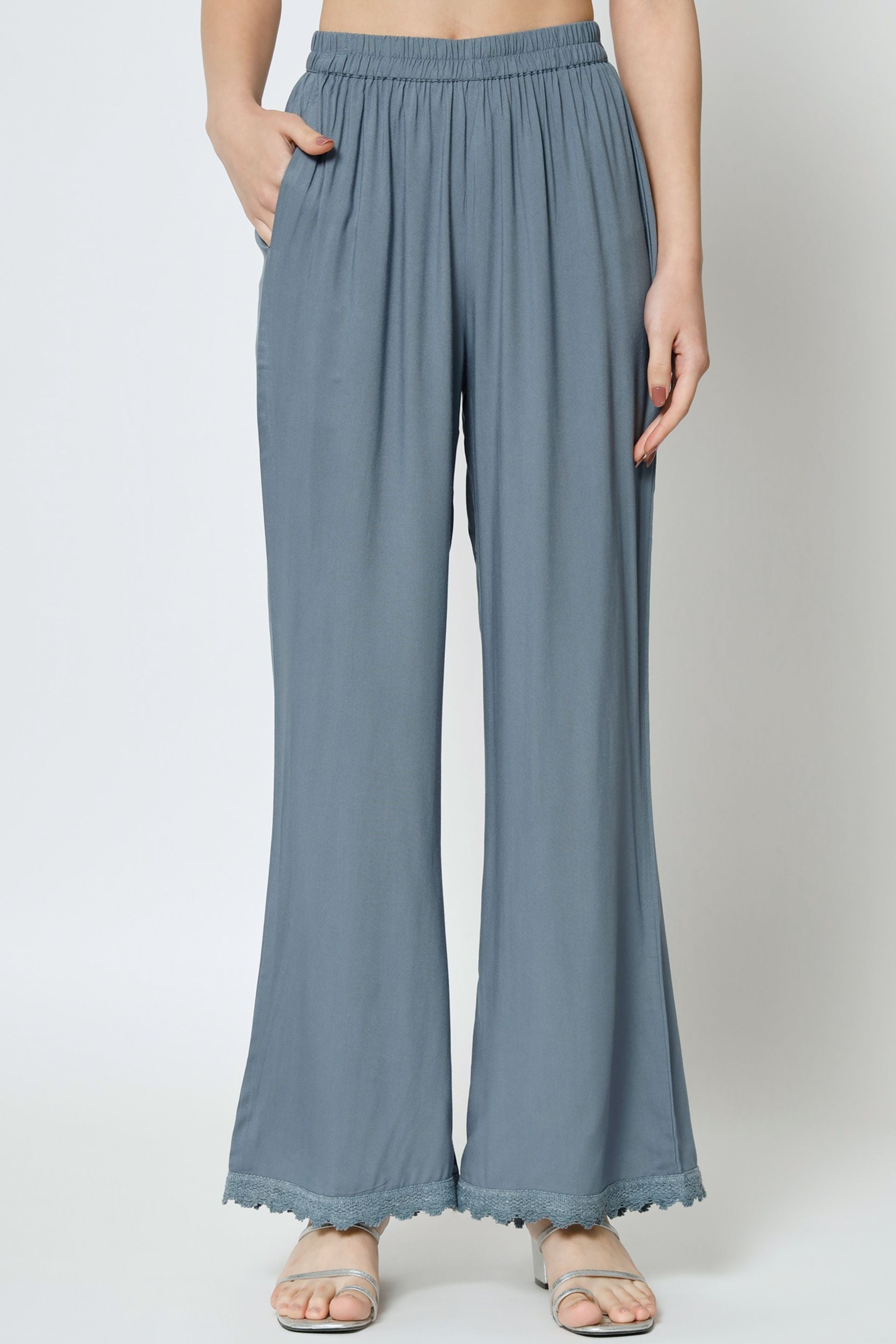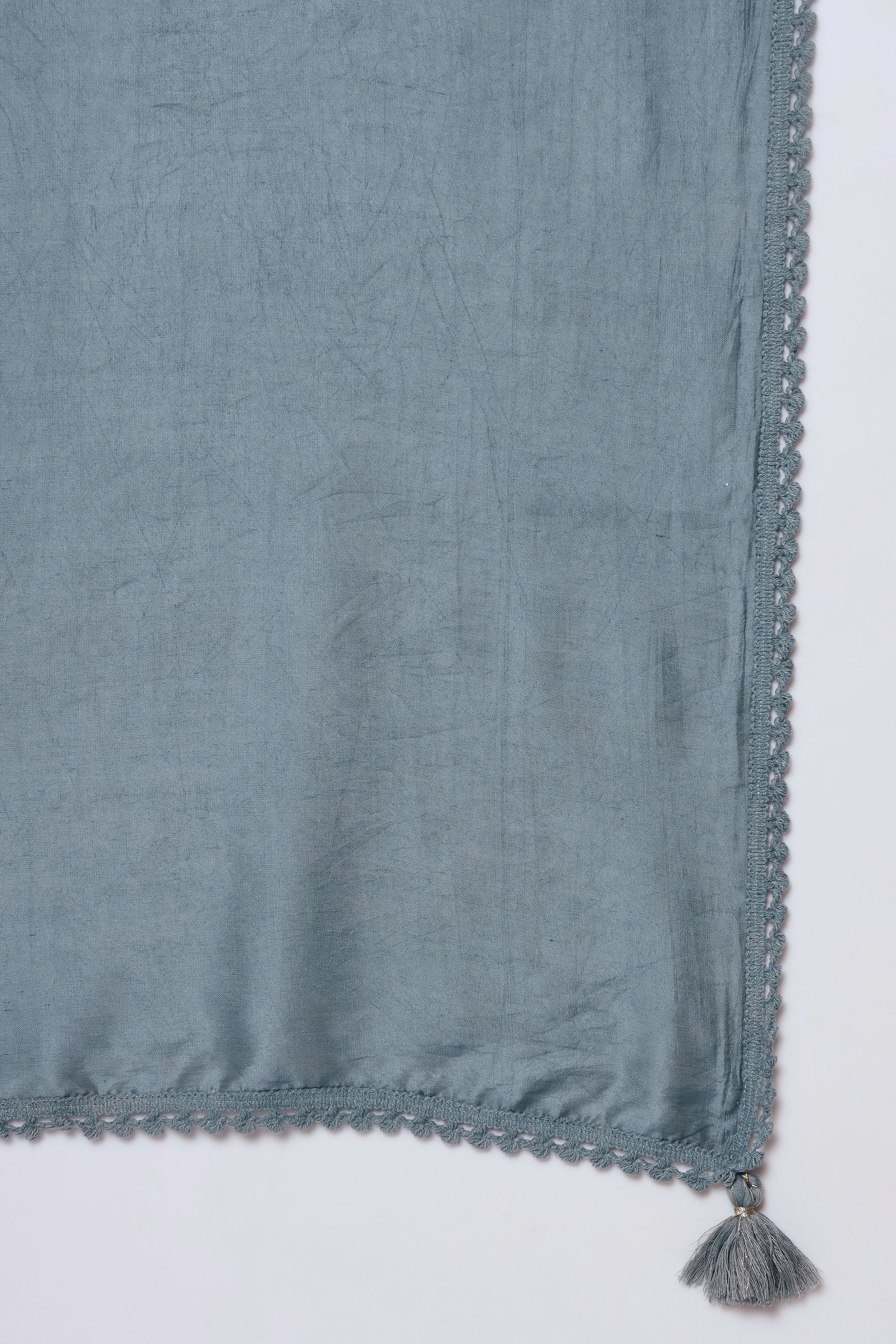 Women's Embroidered Rayon Kurta Palazzo and Dupatta Set