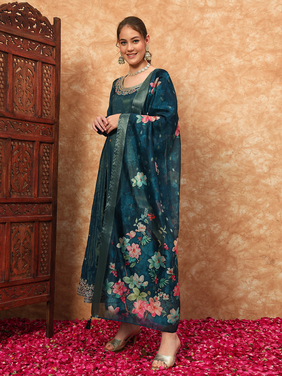 Women's Embroidered Silk Kurta, Pyjama & Dupatta Set