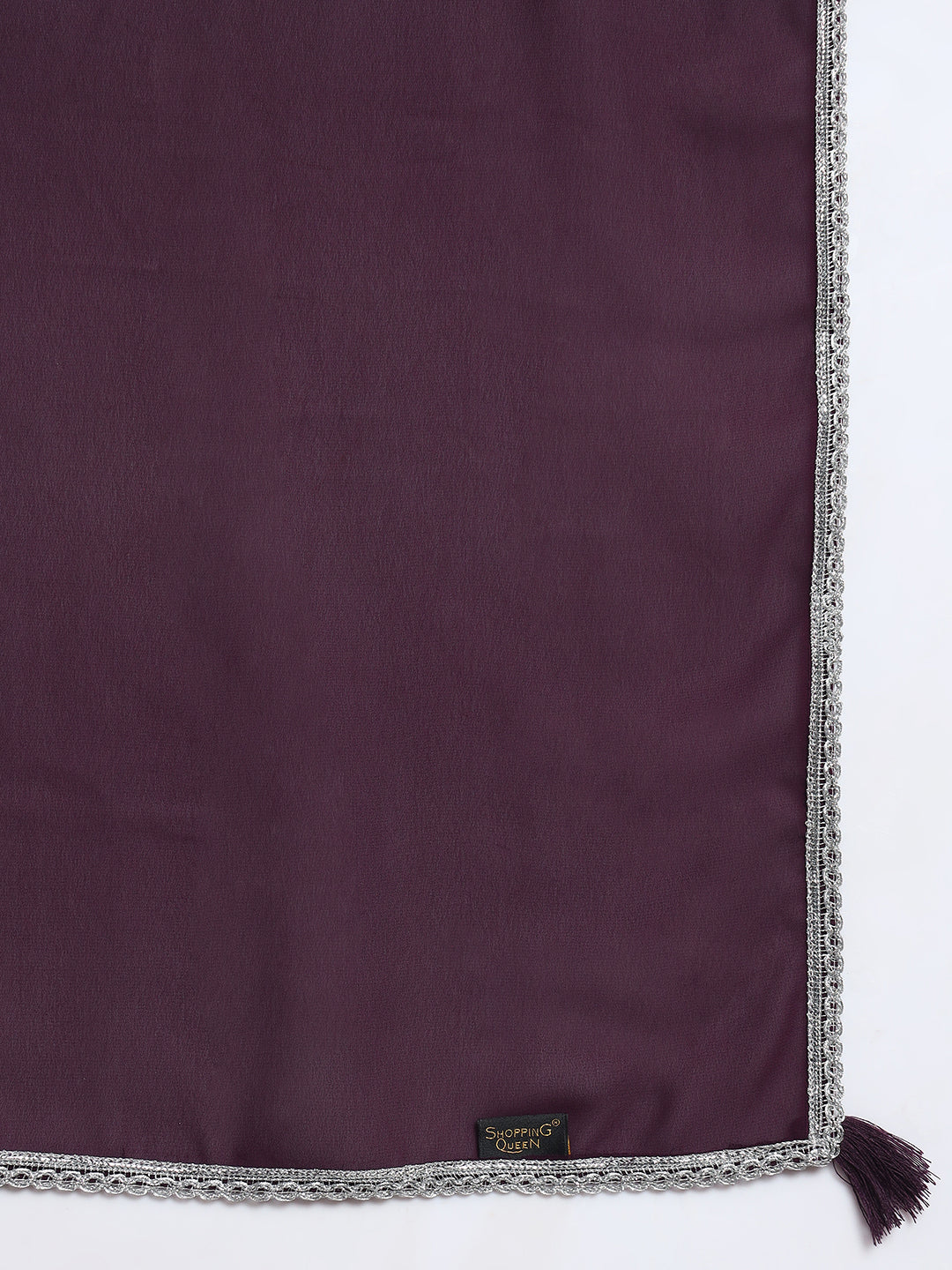 Elevate your ethnic wardrobe with this stunning embroidered kurta set, designed to make a statement at any occasion. Crafted from luxurious georgette fabric, this elegant kurti features intricate embroidery that adds a touch of elegance. The round neck and sleeveless provide a straight silhouette, while the calf-length kurti paired with a matching palazzo set ensures comfort and style. Complete with a beautifully adorned dupatta featuring tassels, this ensemble is perfect for festive celebrations or special gatherings.