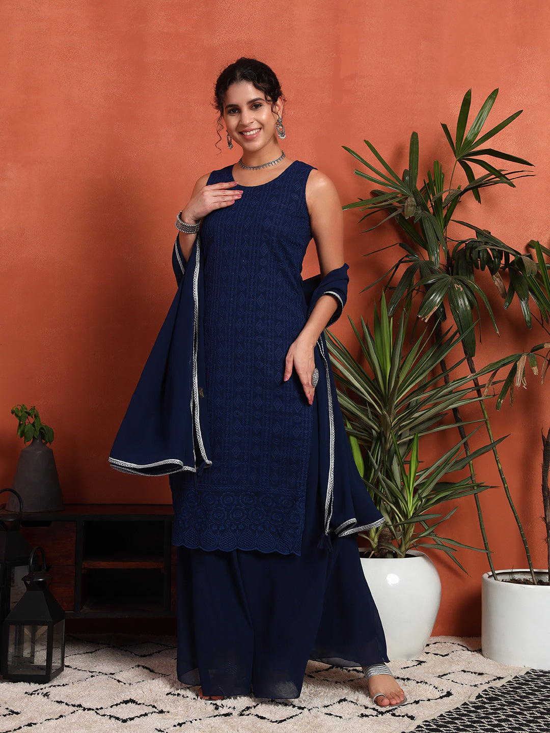 Women's Embroidered Georgette Kurta and Palazzo Set