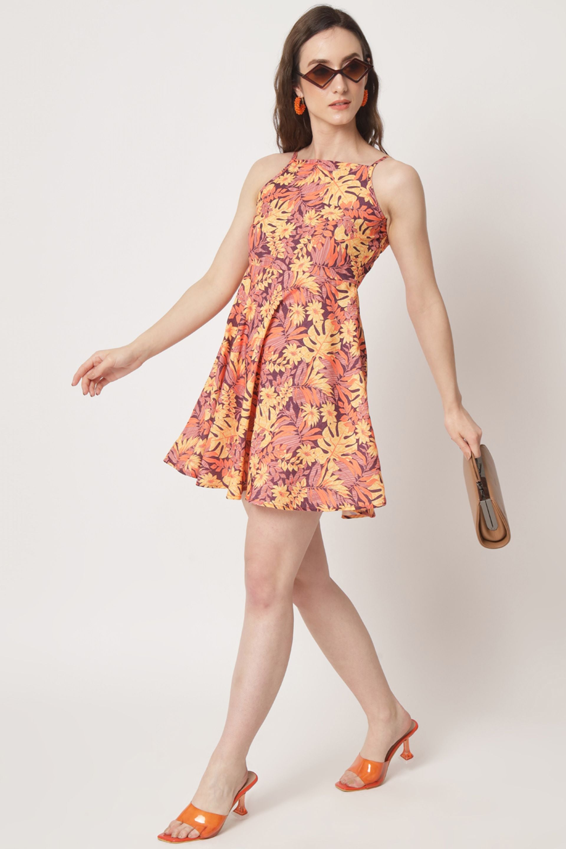Embrace the vibrant essence of summer with our stunning floral print dress. This eye-catching piece features a delightful floral pattern that radiates warmth and joy, making it perfect for any sunny occasion. crafted from lightweight, breathable fabric, it ensures comfort while flattering your silhouette.pair it with sandals for a casual day out or dress it up with heels for an evening event. elevate your wardrobe with this versatile dress that captures the spirit of the season.