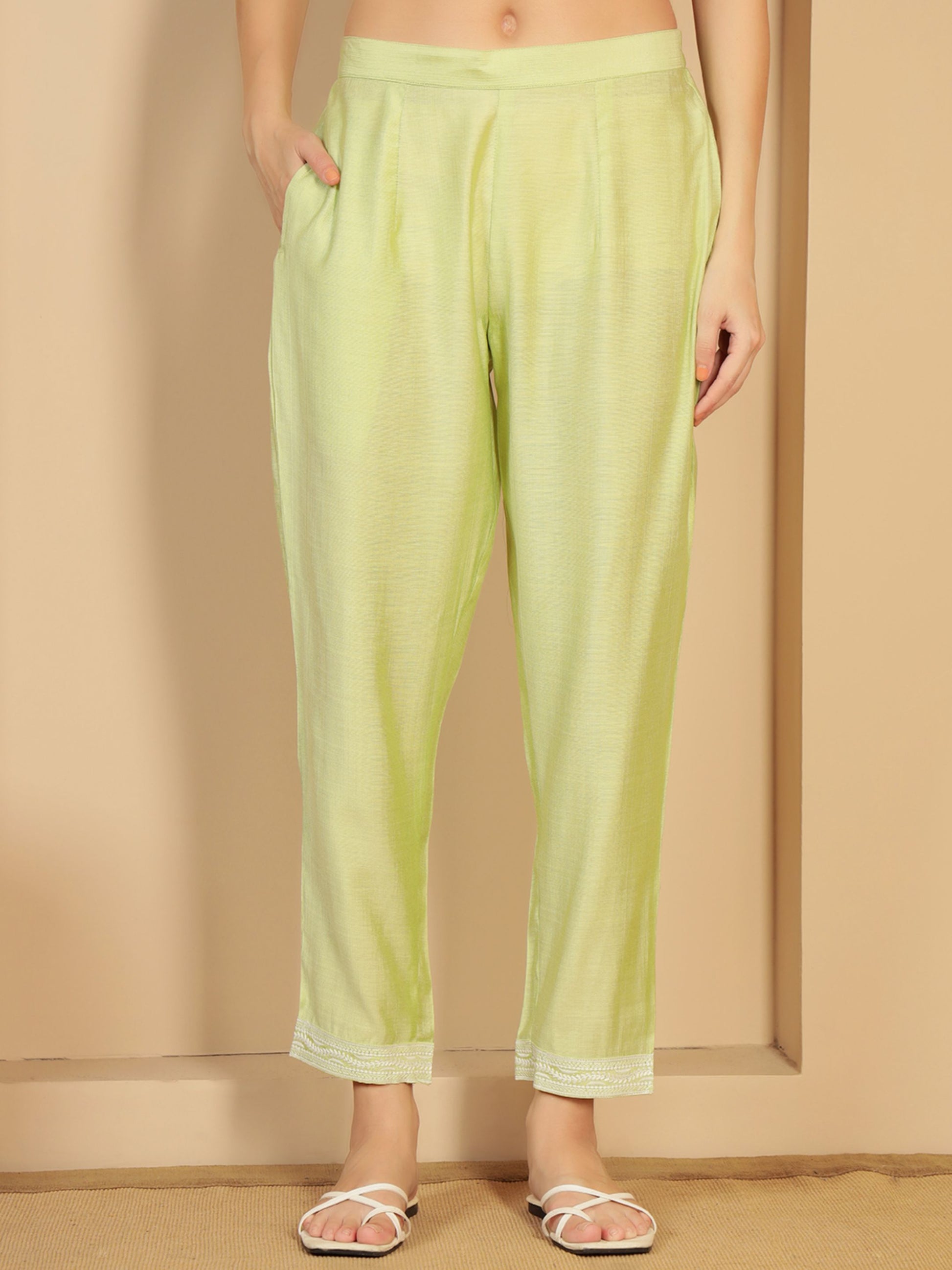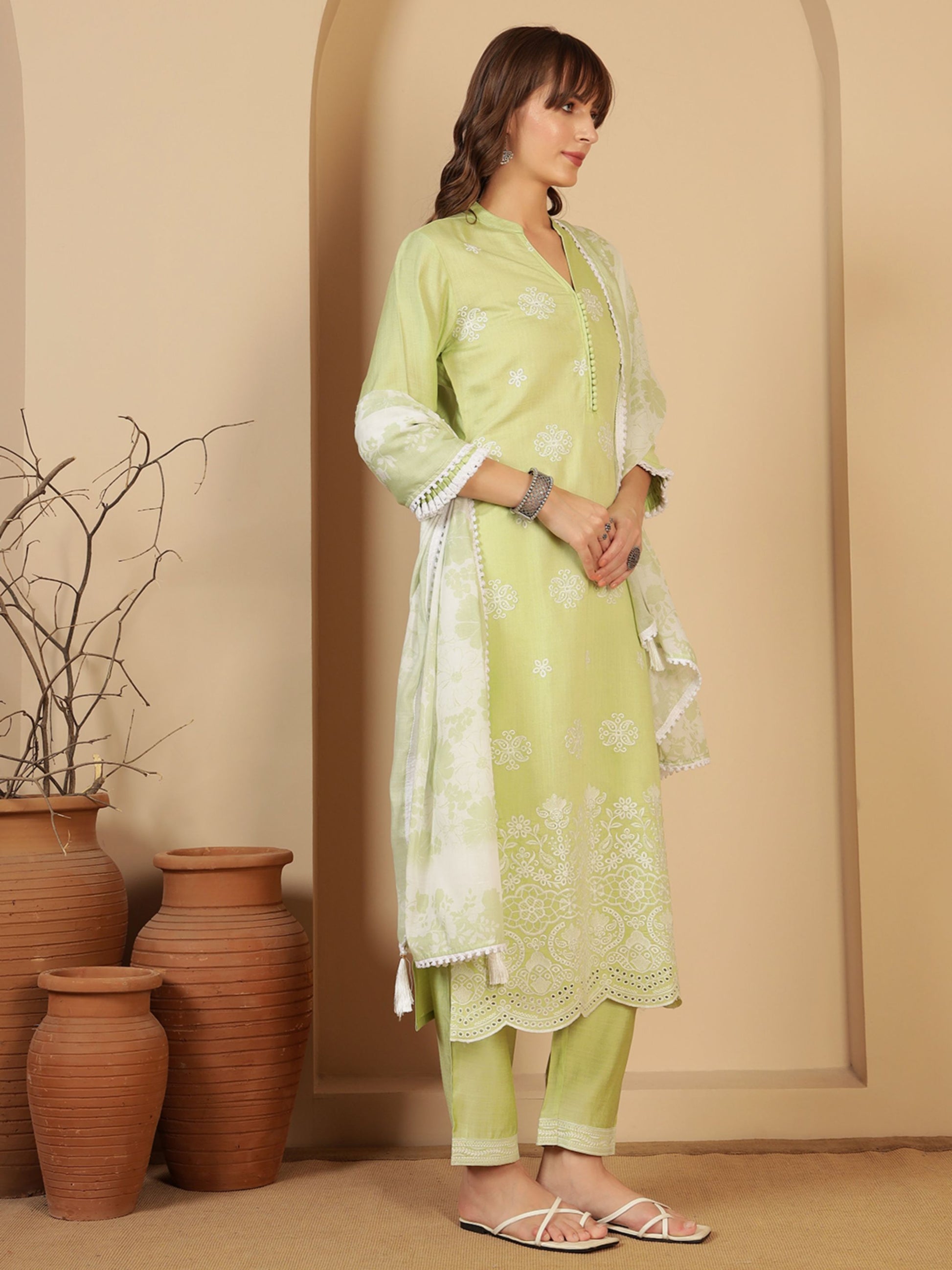 Pastel Green Embroidered Viscose Women's Kurta, Pyjama & Dupatta Set
