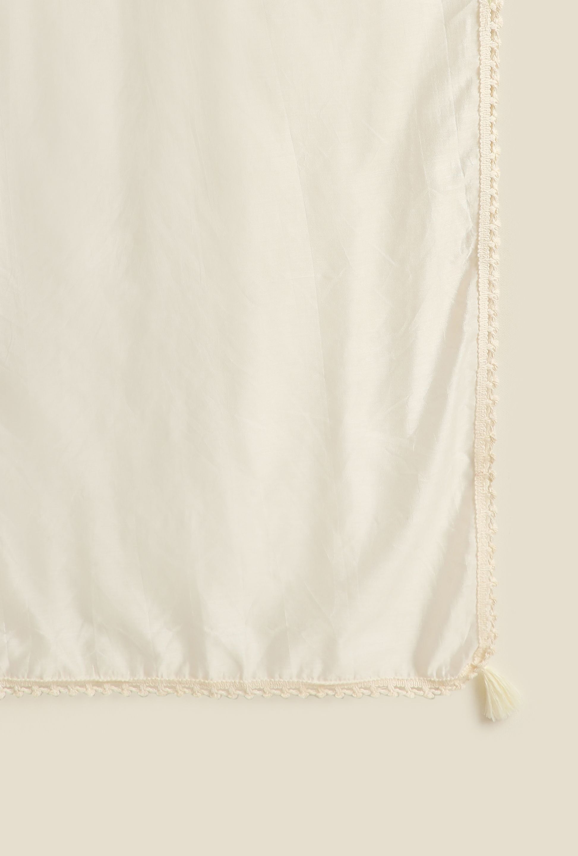 Elevate your ethnic wardrobe with our exquisite White Kurta Set. This knee-length kurta features intricate embroidery and sequinned ornamentation, adding a touch of elegance to your look. The straight shape and round neck design create a flattering silhouette, while the sleeveless style keeps you cool and stylish. Paired with solid palazzo pants that offer an elasticated waistband for a perfect fit, this ensemble is both chic and practical. Complete with a matching solid dupatta adorned with playful tassels, this kurta suit is perfect for festive occasions or casual gatherings. Embrace sophistication and grace with this stunning outfit.