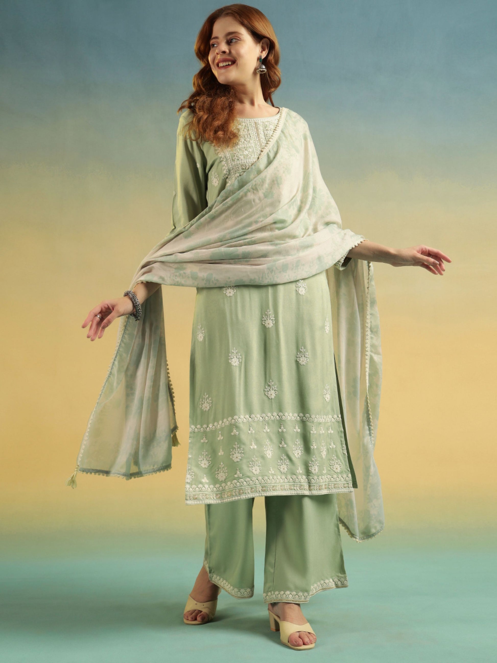 Pista Embroidered Rayon Women's Kurta and Palazzo Set