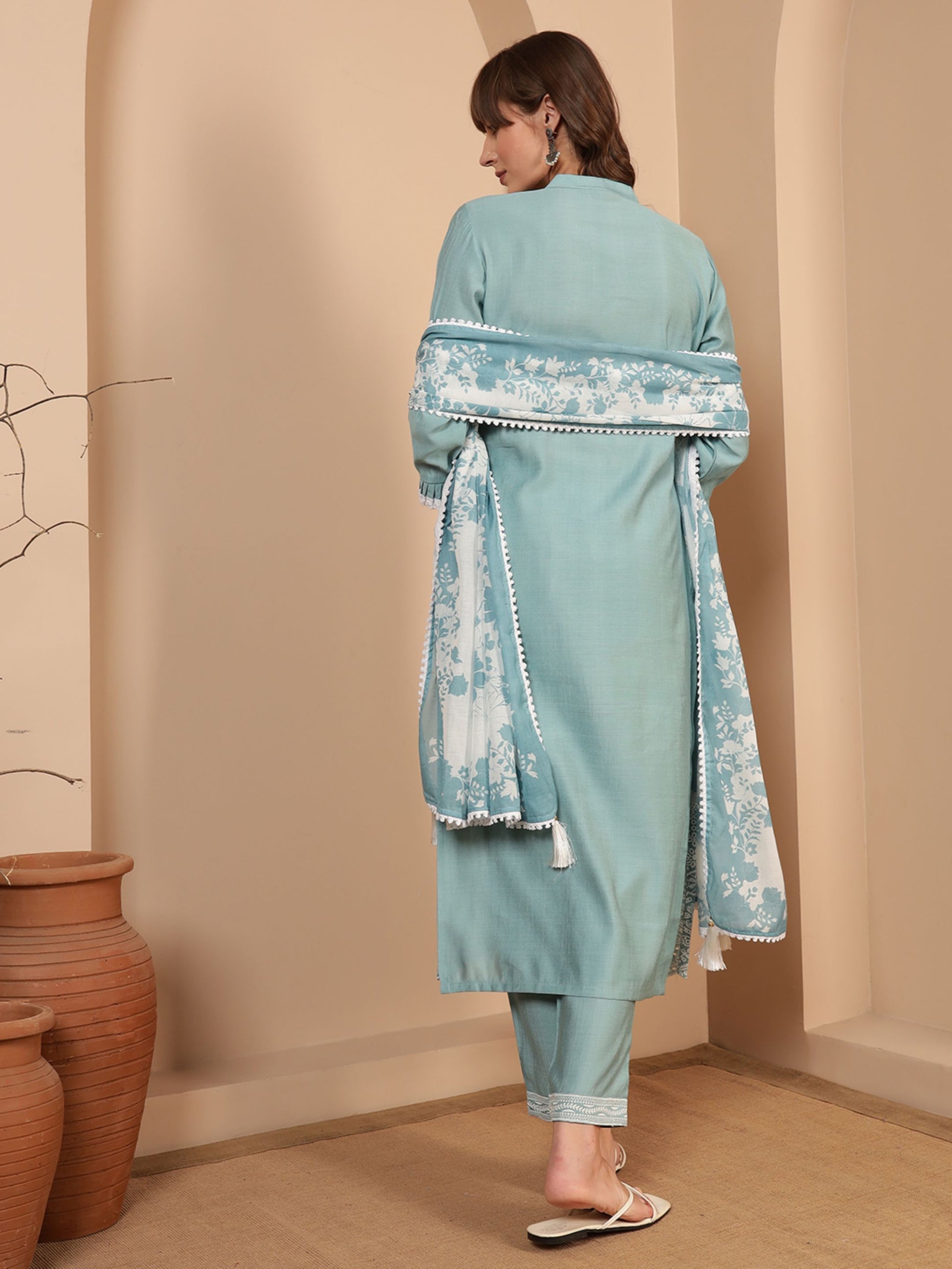 Powder Blue Embroidered Viscose Women's Kurta, Pyjama & Dupatta Set