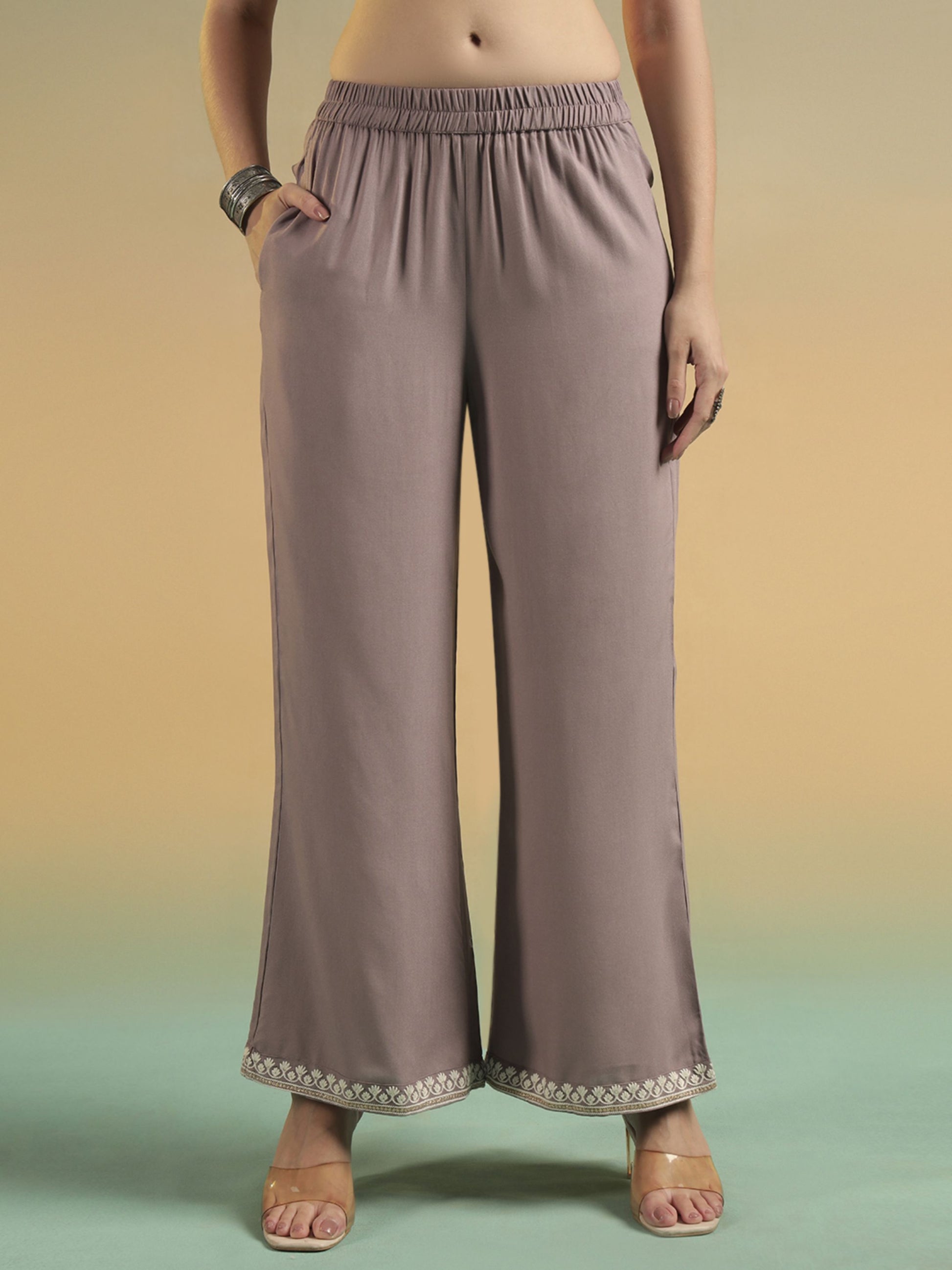 Purple Mauve Embroidered Rayon Women's Kurta and Palazzo Set