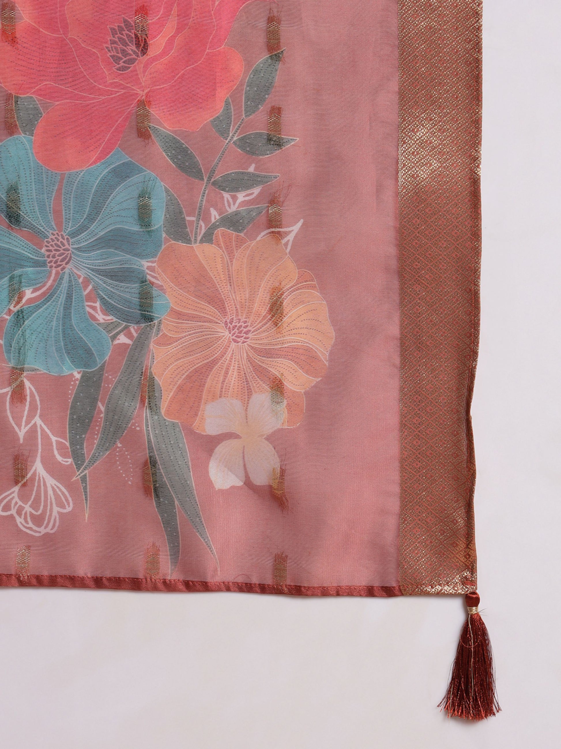 Rust Orange Embroidered Silk Women's Kurta, Pyjama & Dupatta Set