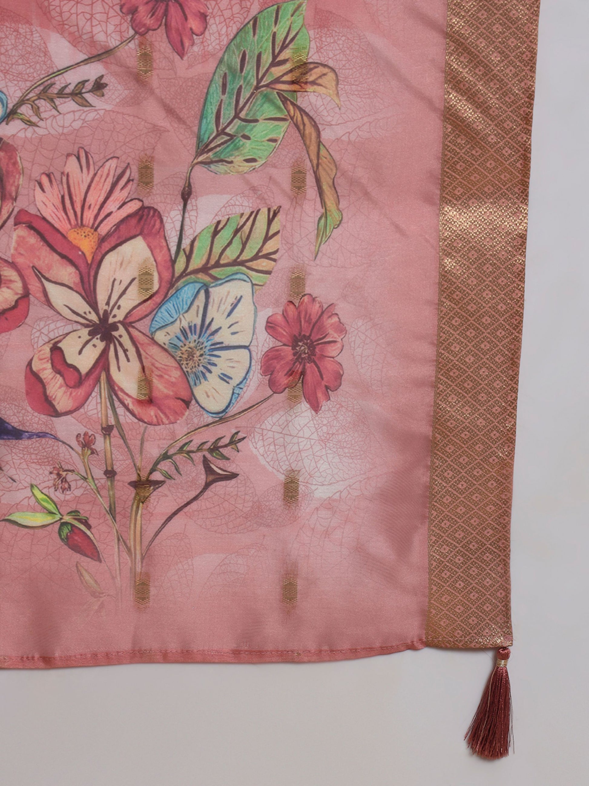 Salmon Orange Embroidered Viscose Women's Kurta, Pyjama & Dupatta Set