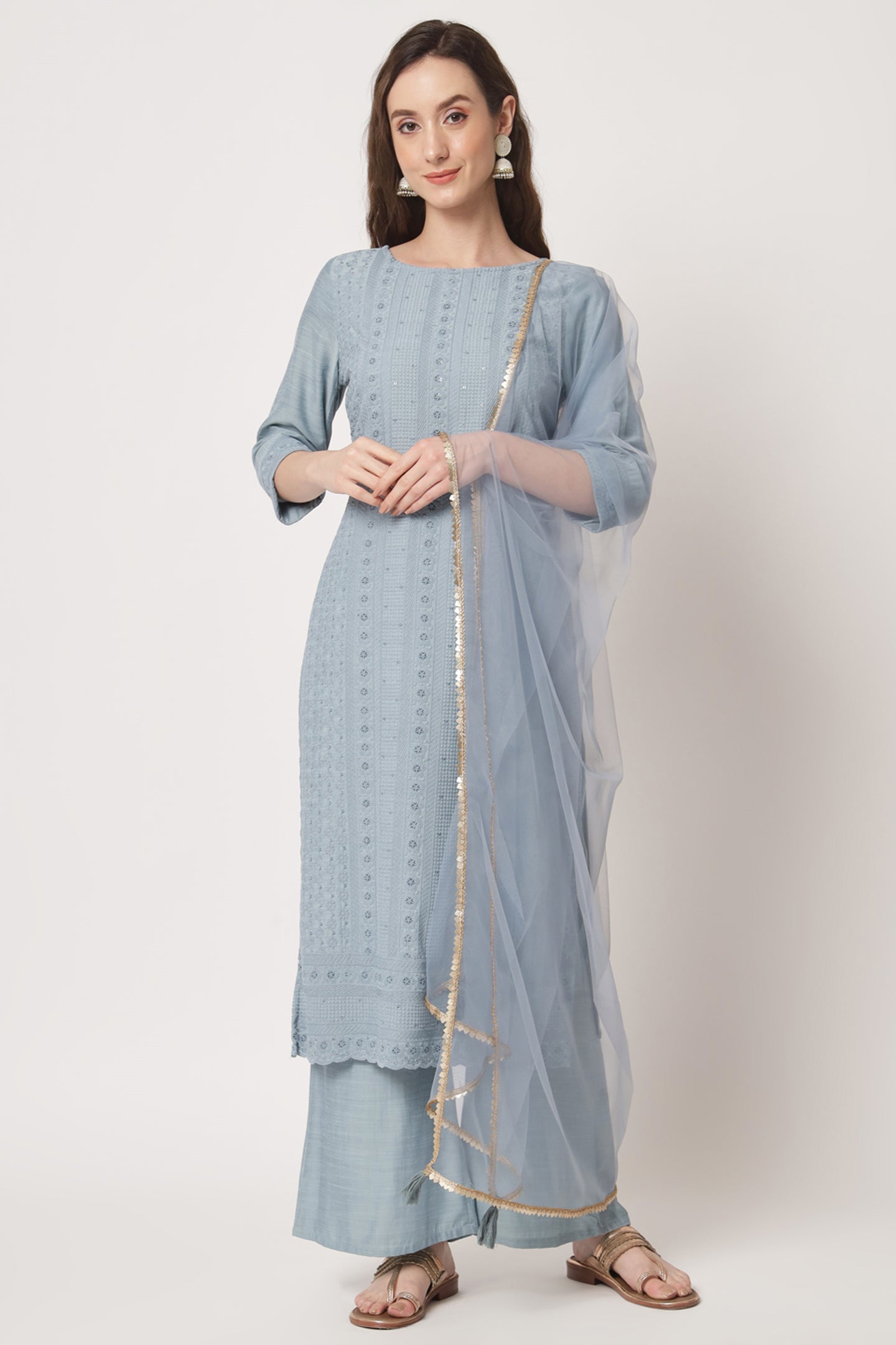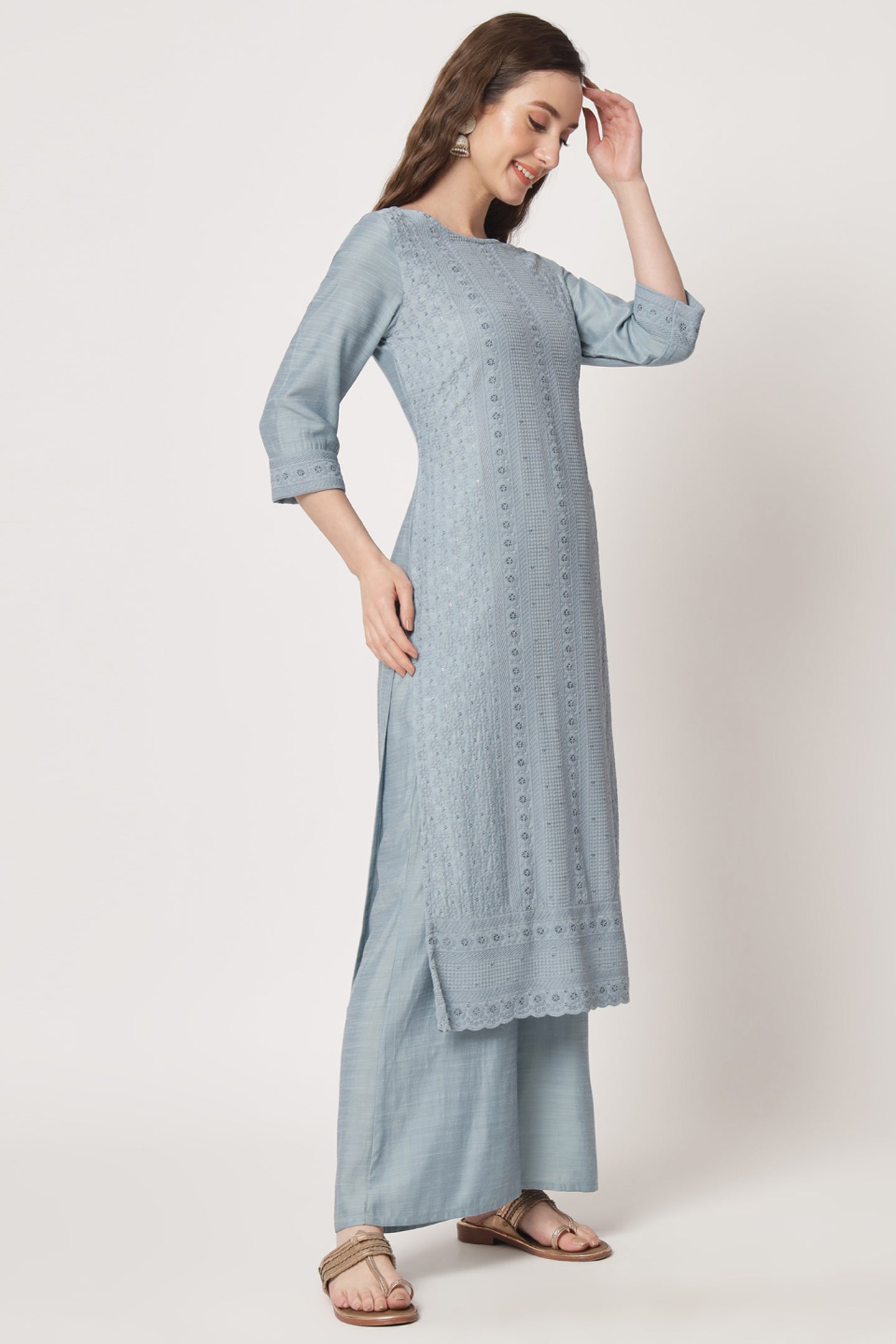 Women's Embroidered Silk Blend Kurta and Palazzo Set