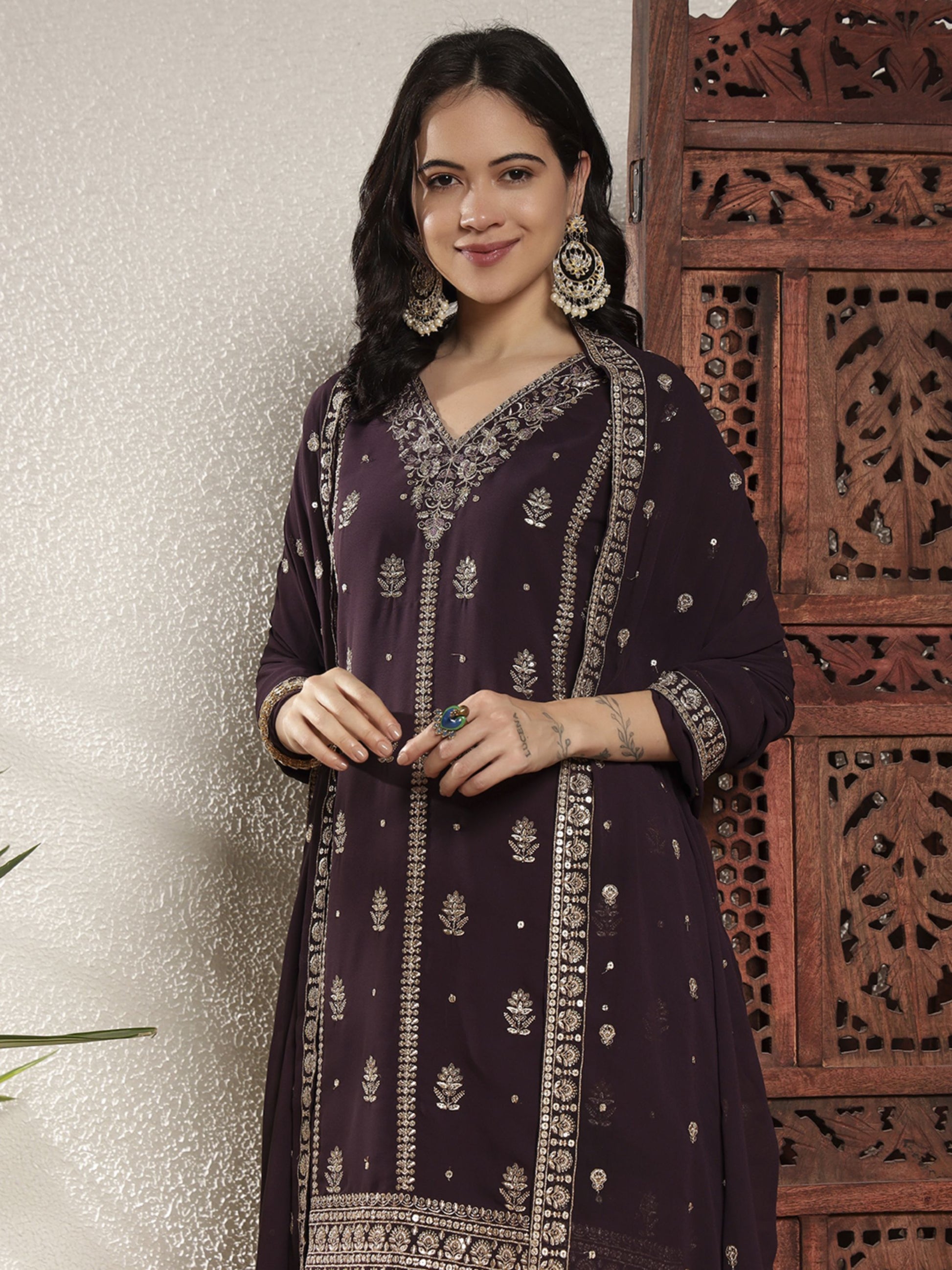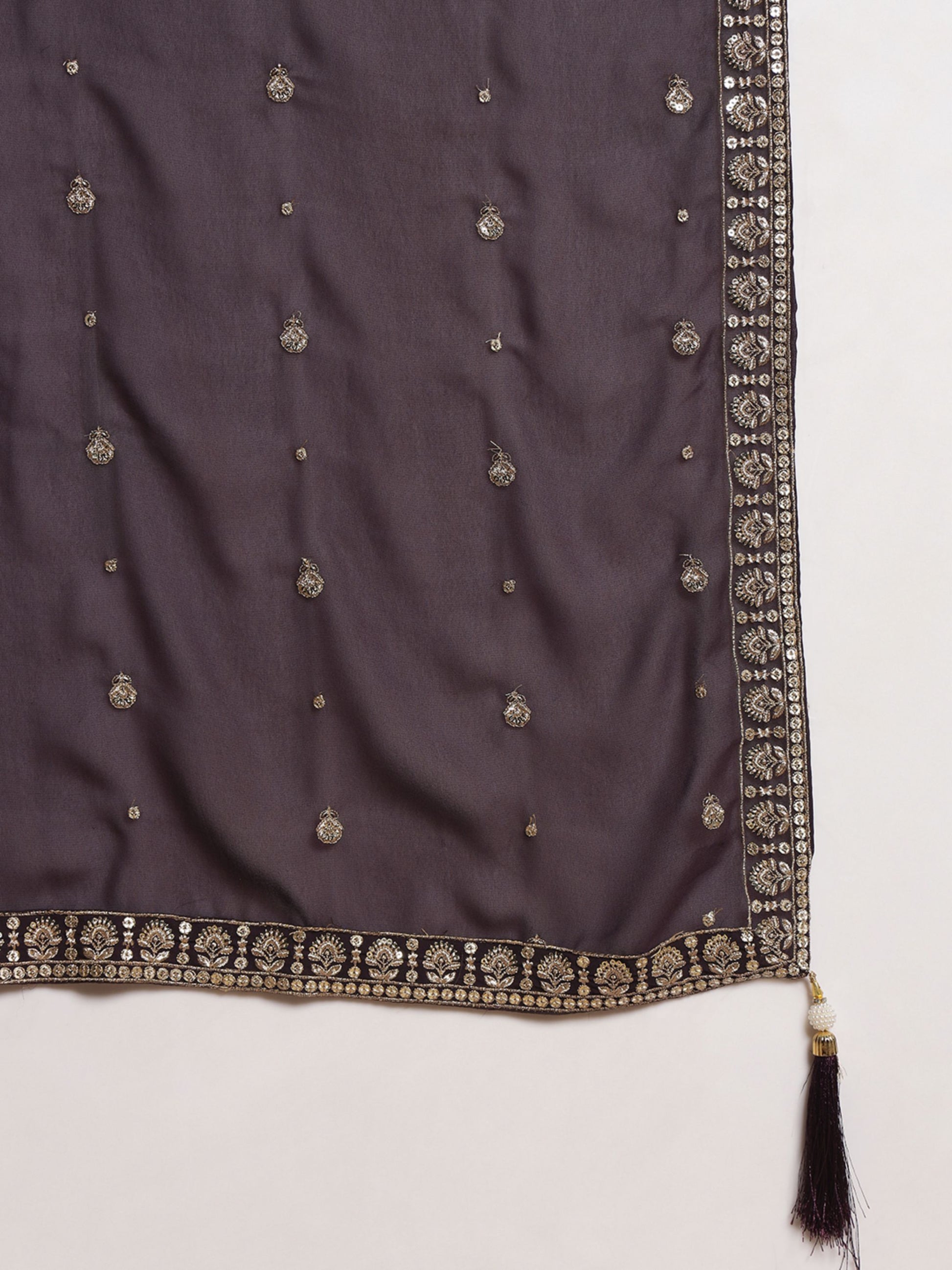 Starbucks Brown Embroidered Georgette Women's Kurta and Palazzo Set