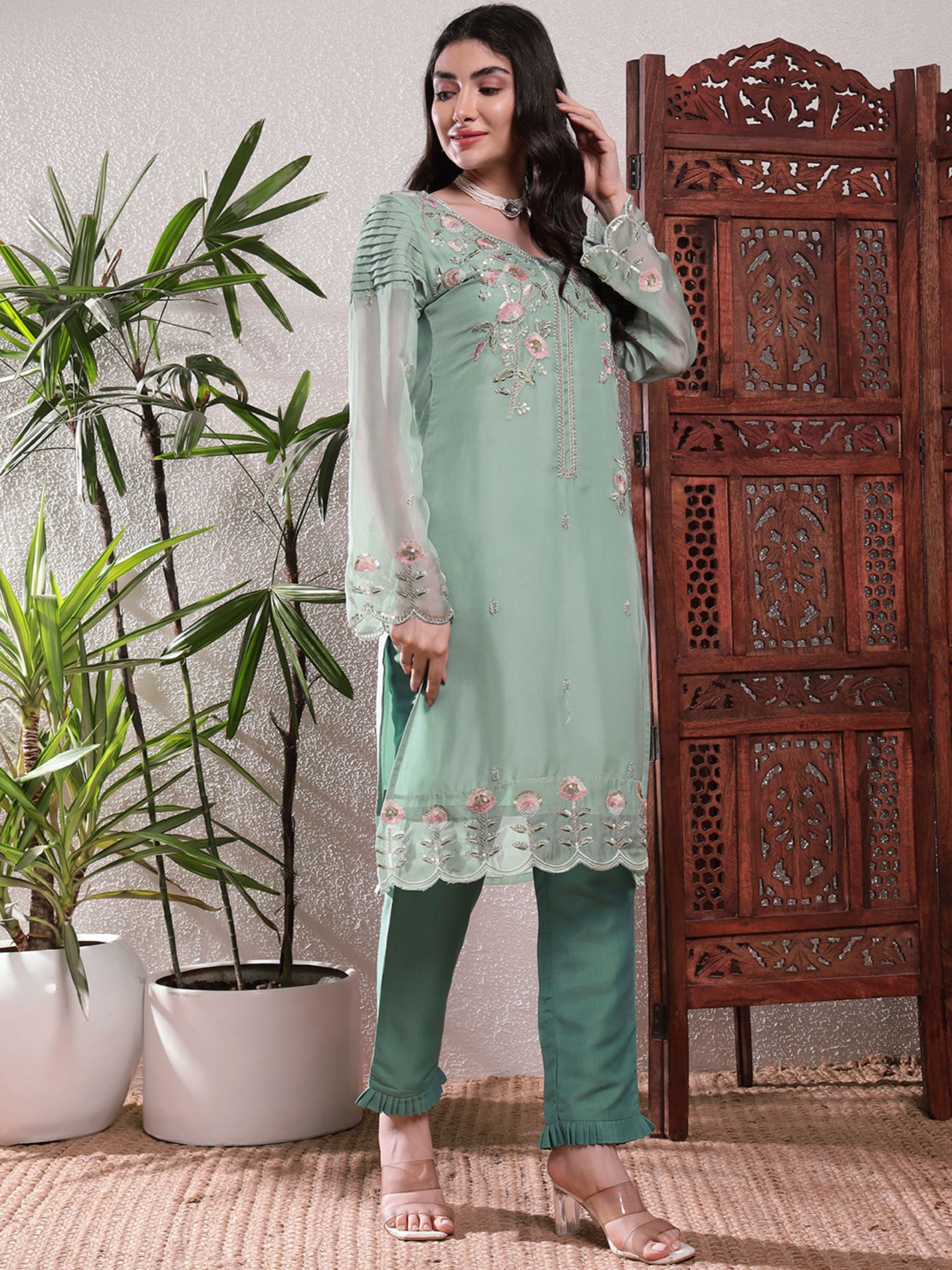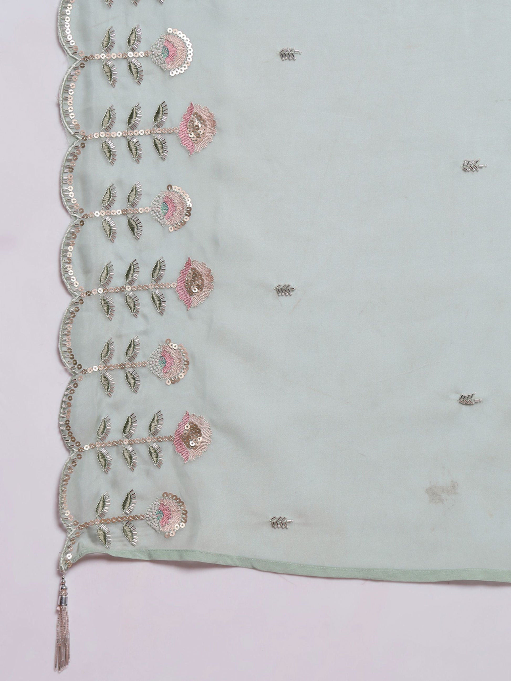 Topaz Green Embroidered Silk Women's Kurta, Pyjama & Dupatta Set