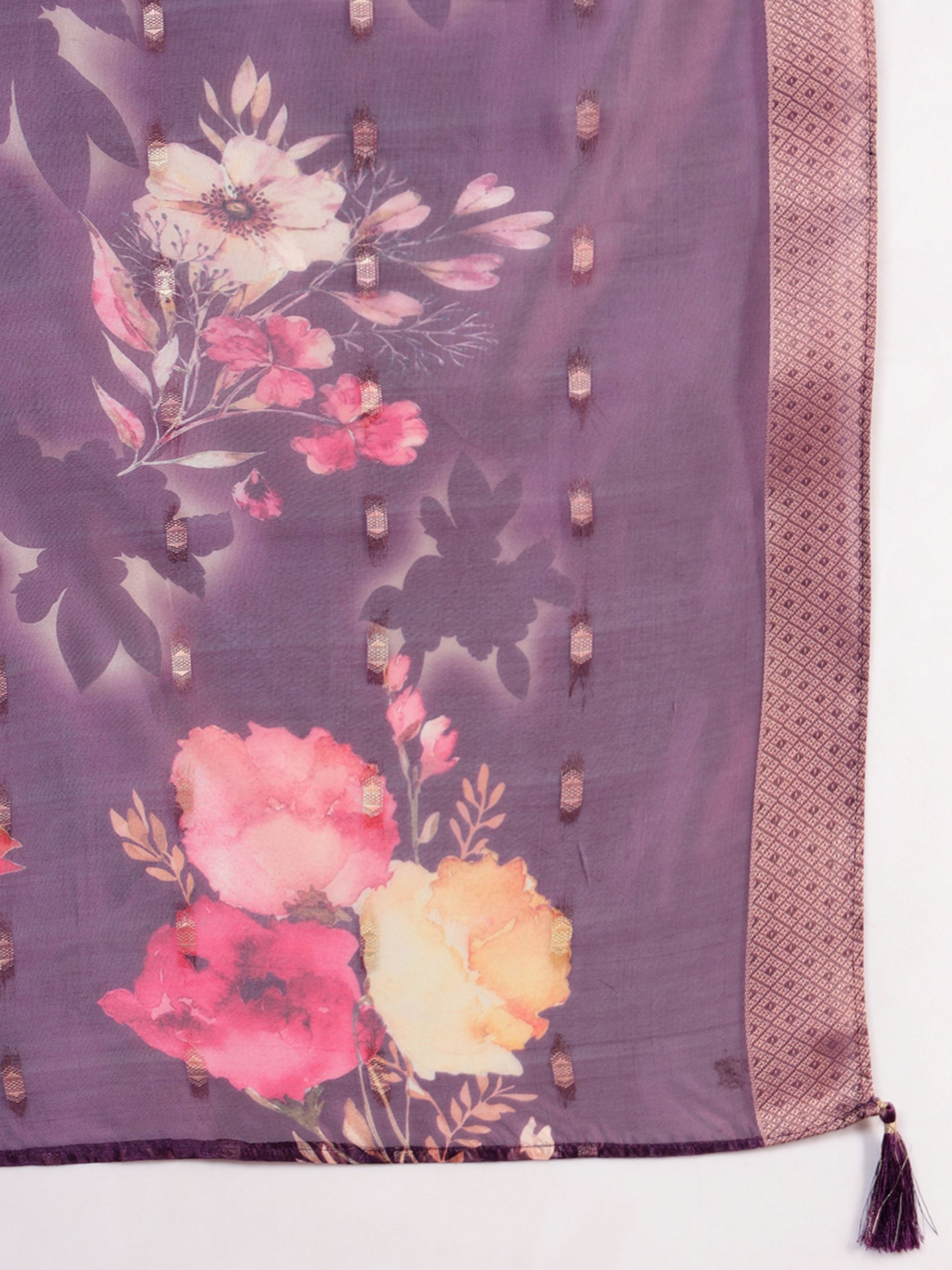 Wine Embroidered Viscose Women's Kurta, Pyjama & Dupatta Set