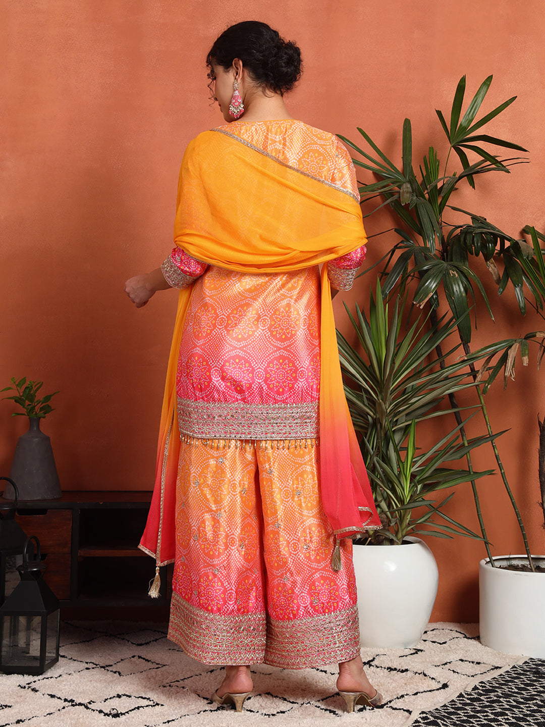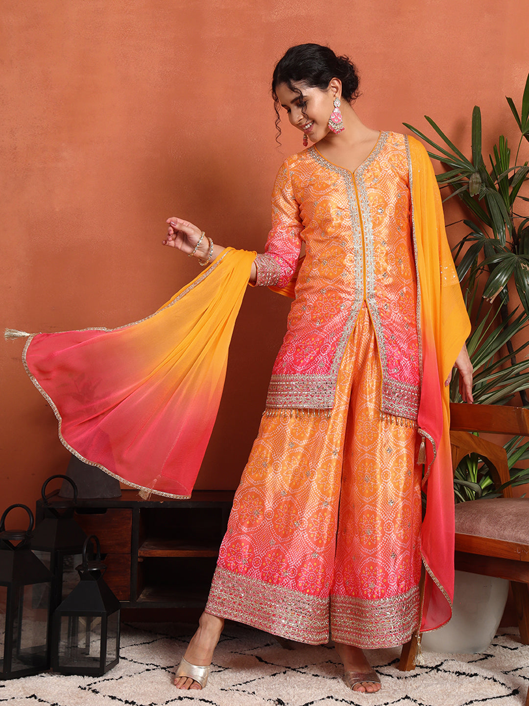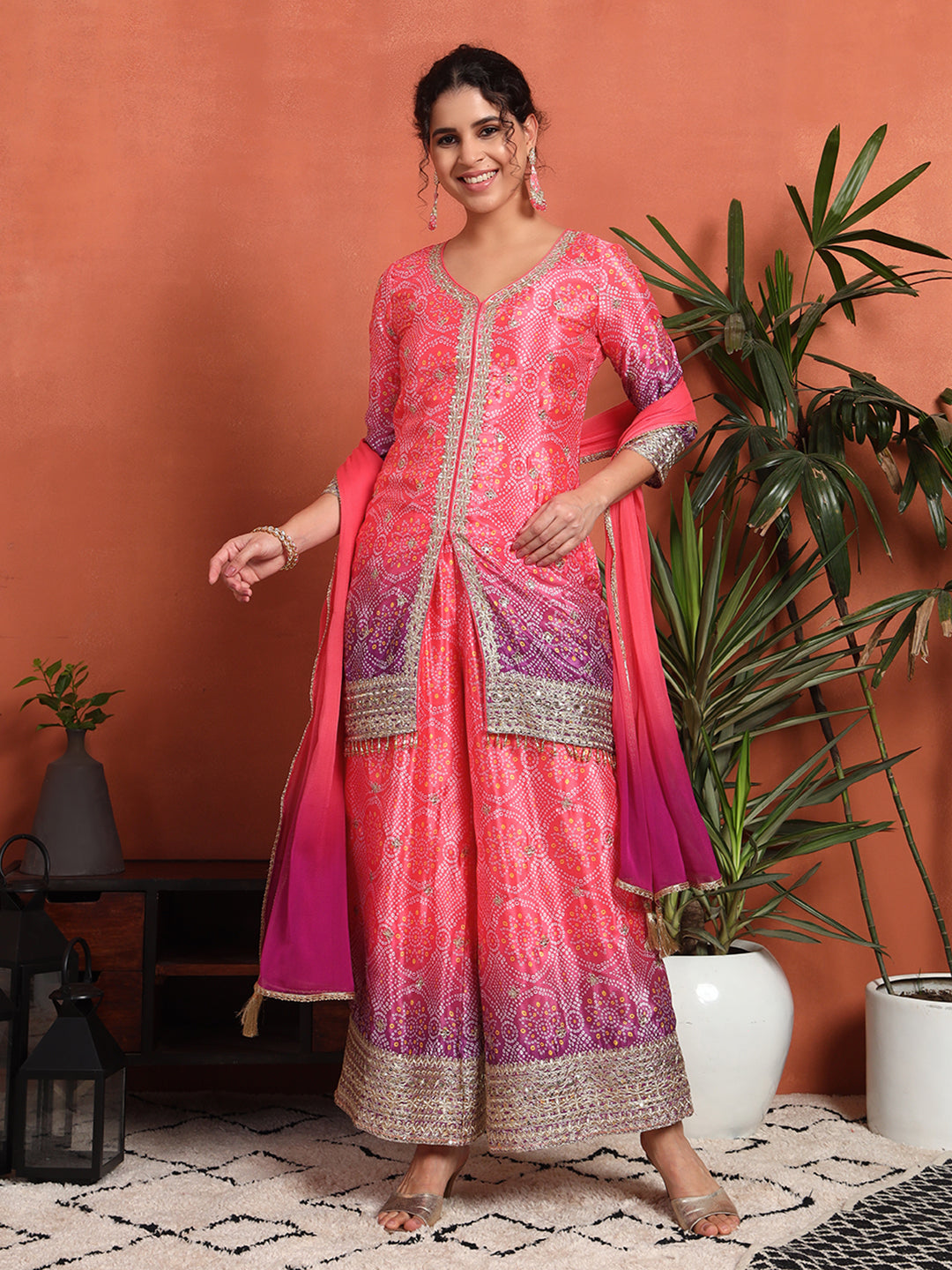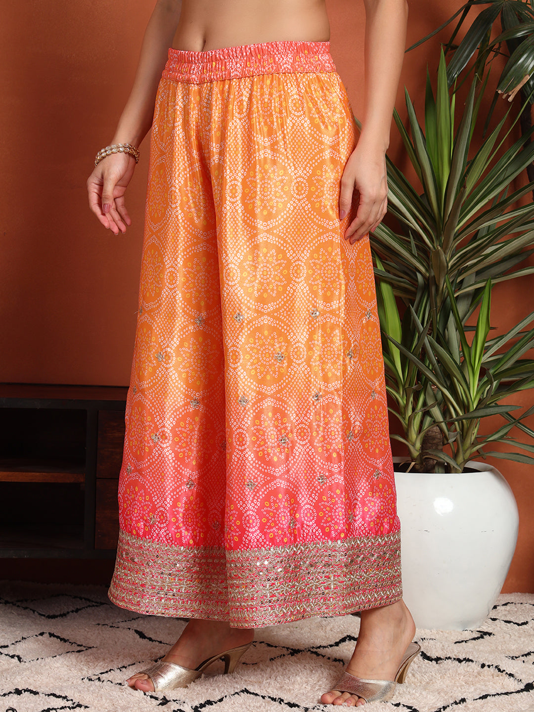 Women's Bandhani Silk Blend Kurta and Palazzo Set