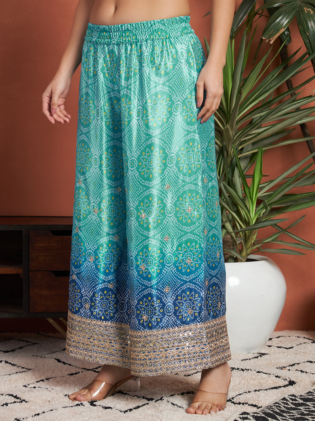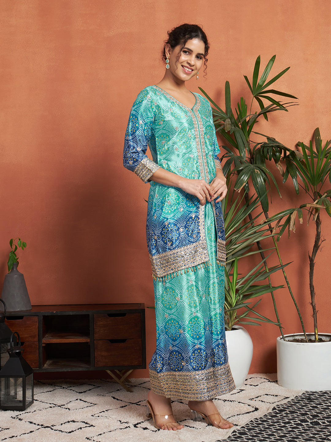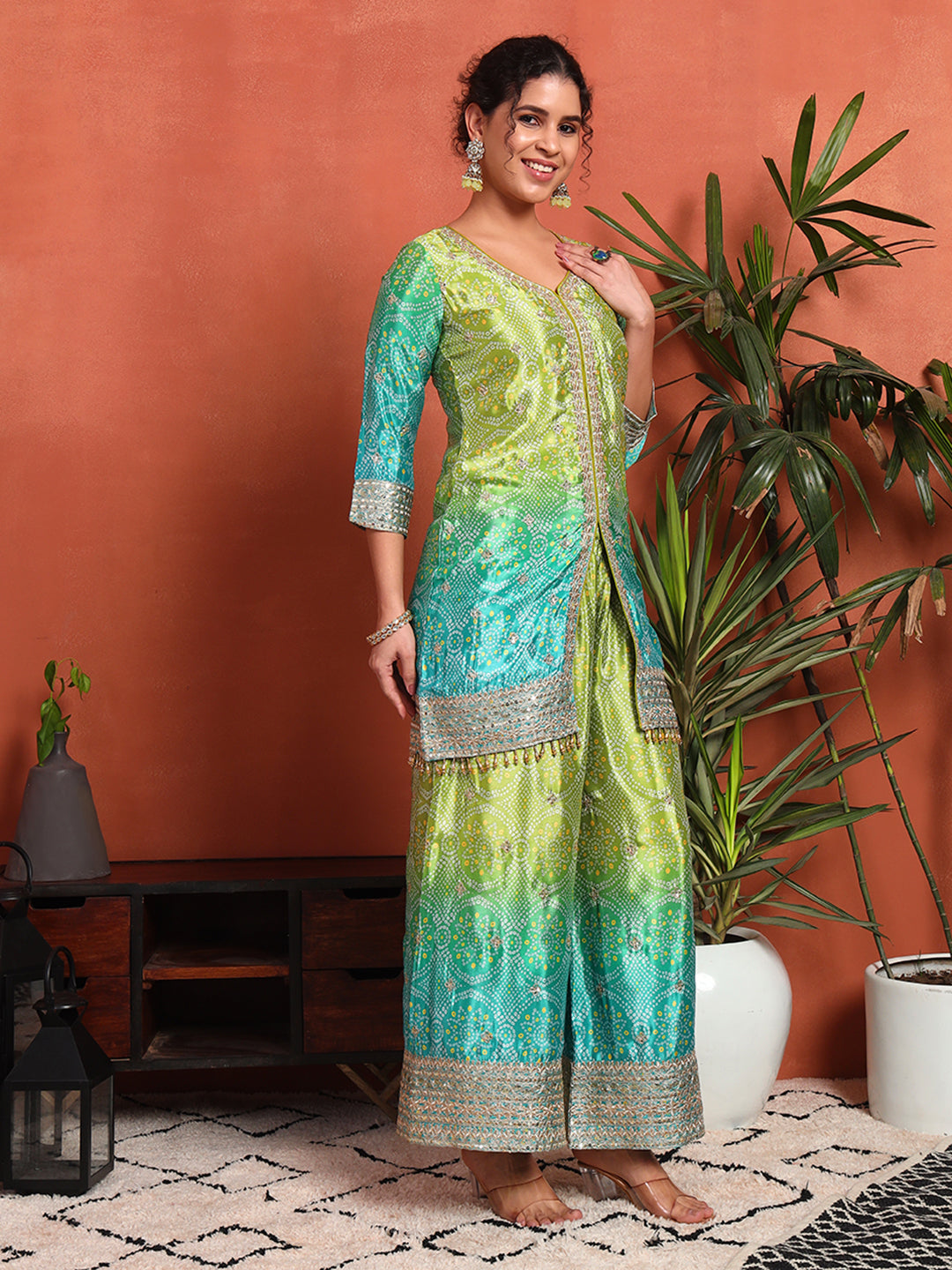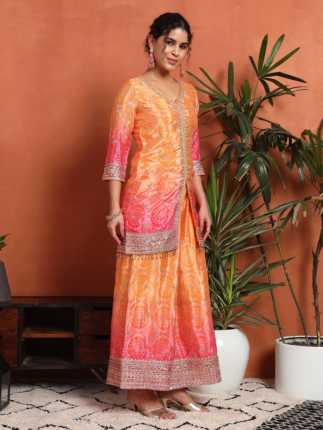 Women's Bandhani Silk Blend Kurta and Palazzo Set